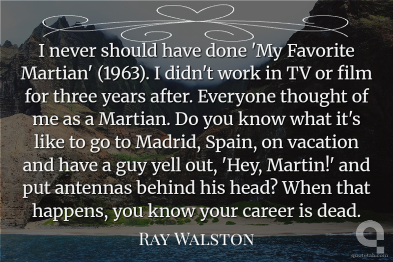 I never should have done 'My Favorite Martian' (1963). I didn't work in TV or film for three years after. Everyone thought of me as a Martian. Do you know what it's like to go to Madrid, Spain, on vacation and have a guy yell out, 'Hey, Martin!' and put antennas behind his head? When that happens, you know your career is dead.