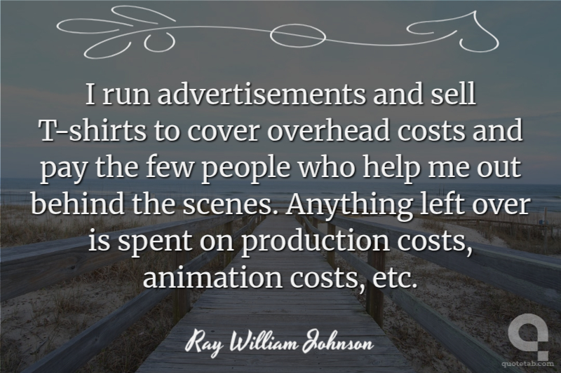 I run advertisements and sell T-shirts to cover overhead costs and pay the few people who help me out behind the scenes. Anything left over is spent on production costs, animation costs, etc.