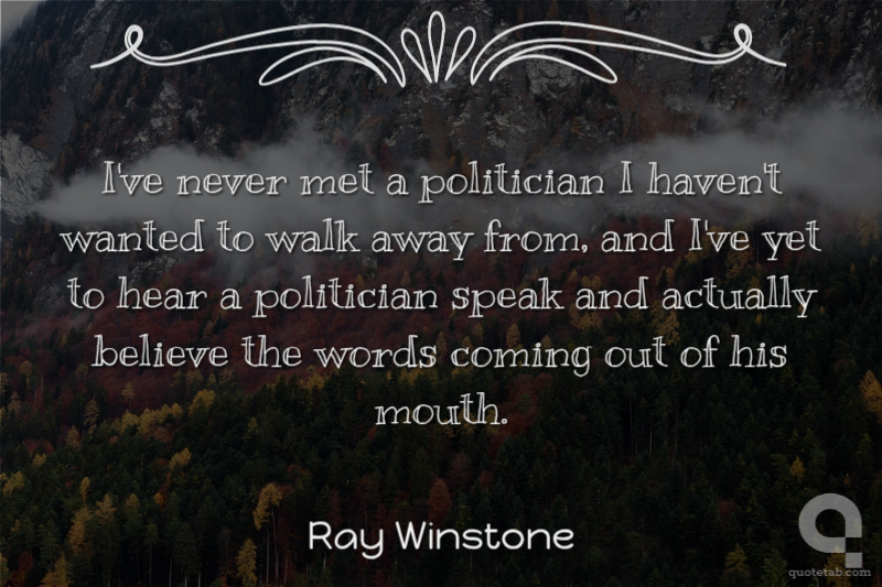 I've never met a politician I haven't wanted to walk away from, and I've yet to hear a politician speak and actually believe the words coming out of his mouth.