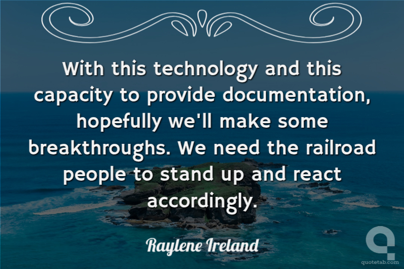 With this technology and this capacity to provide documentation, hopefully we'll make some breakthroughs. We need the railroad people to stand up and react accordingly.