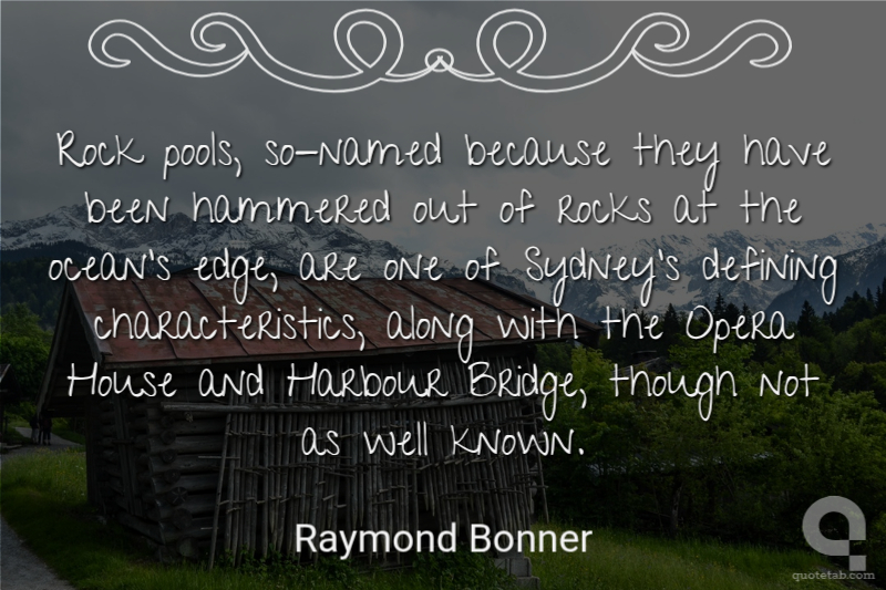 Rock pools, so-named because they have been hammered out of rocks at the ocean's edge, are one of Sydney's defining characteristics, along with the Opera House and Harbour Bridge, though not as well known.