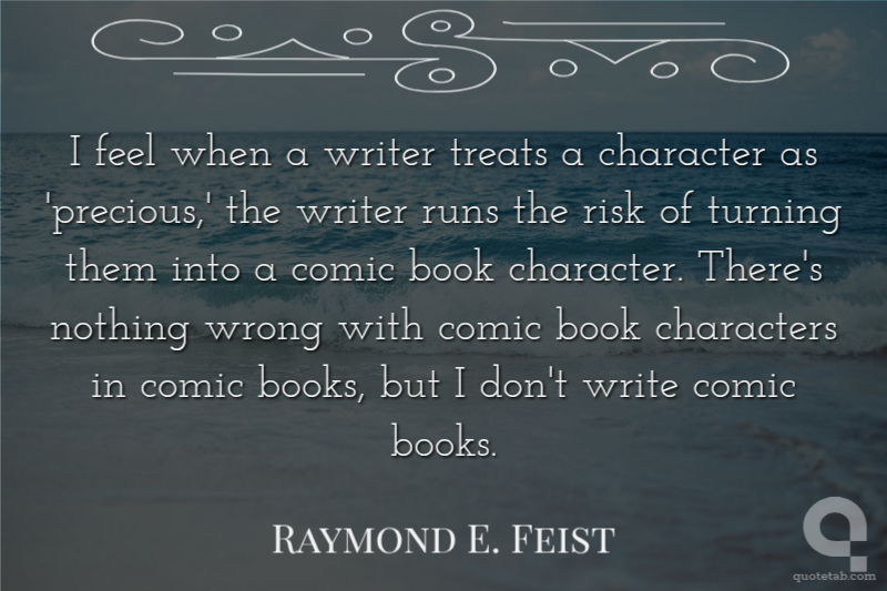 I feel when a writer treats a character as 'precious,' the writer runs the risk of turning them into a comic book character. There's nothing wrong with comic book characters in comic books, but I don't write comic books.