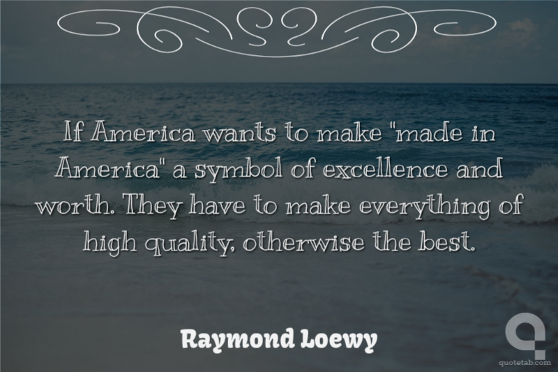 If America wants to make "made in America" a symbol of excellence and worth. They have to make everything of high quality, otherwise the best.