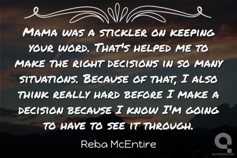 Mama was a stickler on keeping your word. That's helped me to make the right decisions in so many situations. Because of that, I also think really hard before I make a decision because I know I'm going to have to see it through.