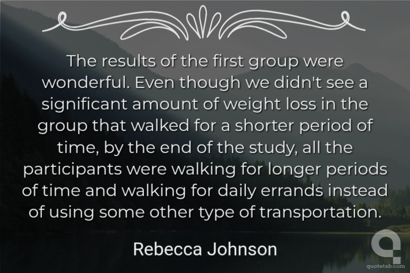 The results of the first group were wonderful. Even though we didn't see a significant amount of weight loss in the group that walked for a shorter period of time, by the end of the study, all the participants were walking for longer periods of time and walking for daily errands instead of using some other type of transportation.