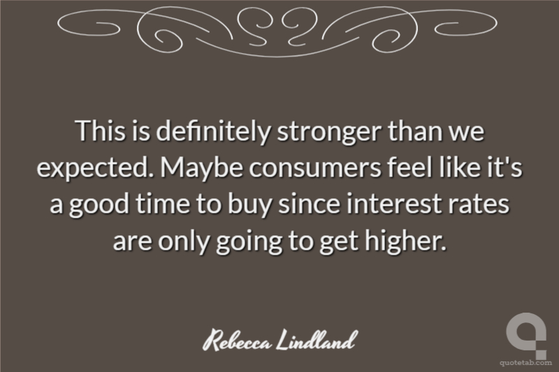 This is definitely stronger than we expected. Maybe consumers feel like it's a good time to buy since interest rates are only going to get higher.