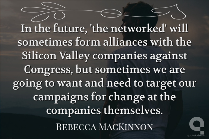 In the future, 'the networked' will sometimes form alliances with the Silicon Valley companies against Congress, but sometimes we are going to want and need to target our campaigns for change at the companies themselves.