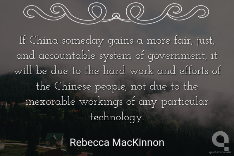 If China someday gains a more fair, just, and accountable system of government, it will be due to the hard work and efforts of the Chinese people, not due to the inexorable workings of any particular technology.
