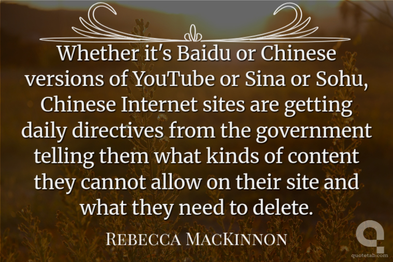 Whether it's Baidu or Chinese versions of YouTube or Sina or Sohu, Chinese Internet sites are getting daily directives from the government telling them what kinds of content they cannot allow on their site and what they need to delete.