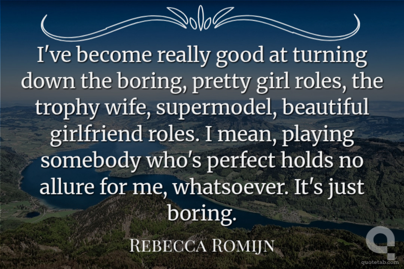 I've become really good at turning down the boring, pretty girl roles, the trophy wife, supermodel, beautiful girlfriend roles. I mean, playing somebody who's perfect holds no allure for me, whatsoever. It's just boring.
