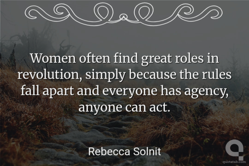 Women often find great roles in revolution, simply because the rules fall apart and everyone has agency, anyone can act.