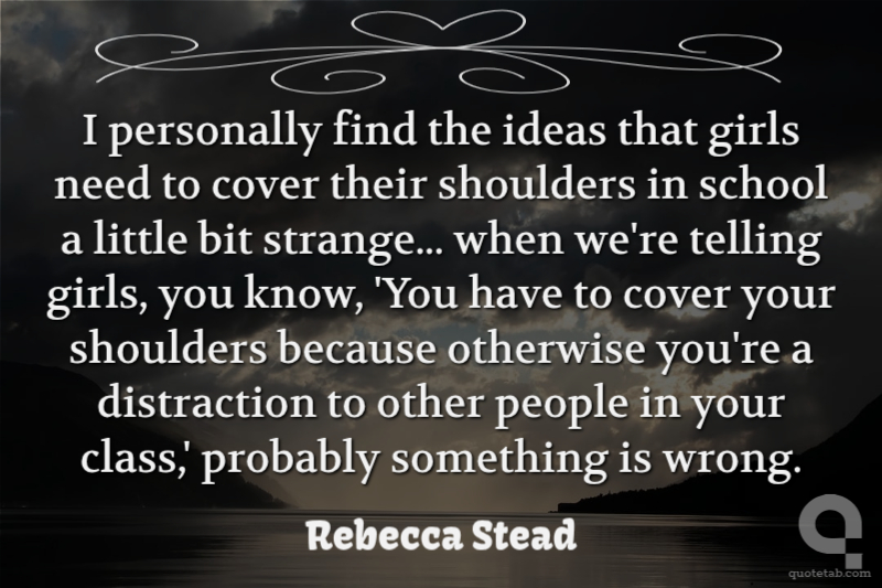 I personally find the ideas that girls need to cover their shoulders in school a little bit strange... when we're telling girls, you know, 'You have to cover your shoulders because otherwise you're a distraction to other people in your class,' probably something is wrong.