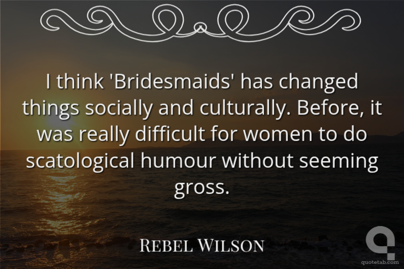 I think 'Bridesmaids' has changed things socially and culturally. Before, it was really difficult for women to do scatological humour without seeming gross.