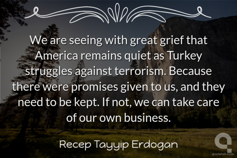 We are seeing with great grief that America remains quiet as Turkey struggles against terrorism. Because there were promises given to us, and they need to be kept. If not, we can take care of our own business.