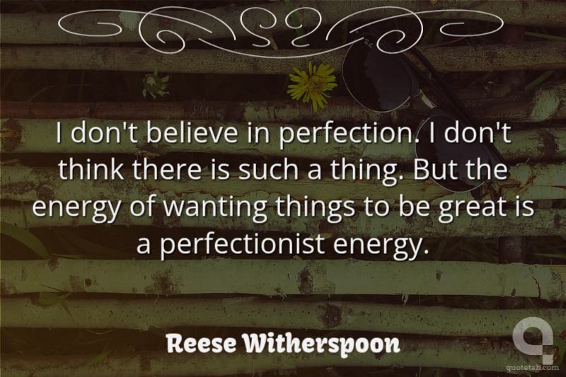 I don't believe in perfection. I don't think there is such a thing. But the energy of wanting things to be great is a perfectionist energy.
