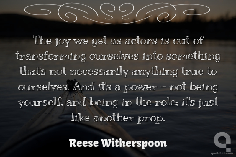 The joy we get as actors is out of transforming ourselves into something that's not necessarily anything true to ourselves. And it's a power - not being yourself, and being in the role; it's just like another prop.