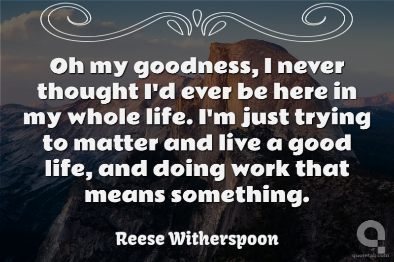 Oh my goodness, I never thought I'd ever be here in my whole life. I'm just trying to matter and live a good life, and doing work that means something.