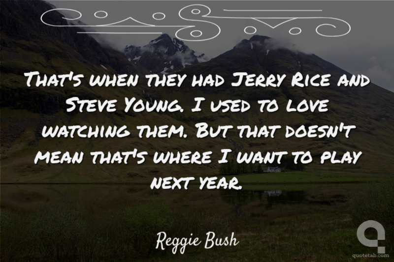 That's when they had Jerry Rice and Steve Young. I used to love watching them. But that doesn't mean that's where I want to play next year.