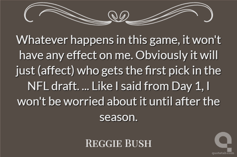 Whatever happens in this game, it won't have any effect on me. Obviously it will just (affect) who gets the first pick in the NFL draft. ... Like I said from Day 1, I won't be worried about it until after the season.