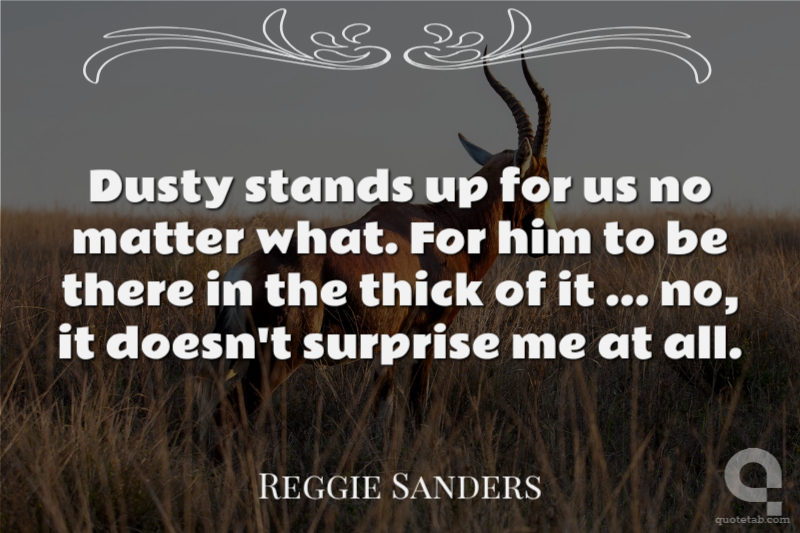 Dusty stands up for us no matter what. For him to be there in the thick of it ... no, it doesn't surprise me at all.