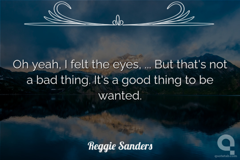 Oh yeah, I felt the eyes, ... But that's not a bad thing. It's a good thing to be wanted.