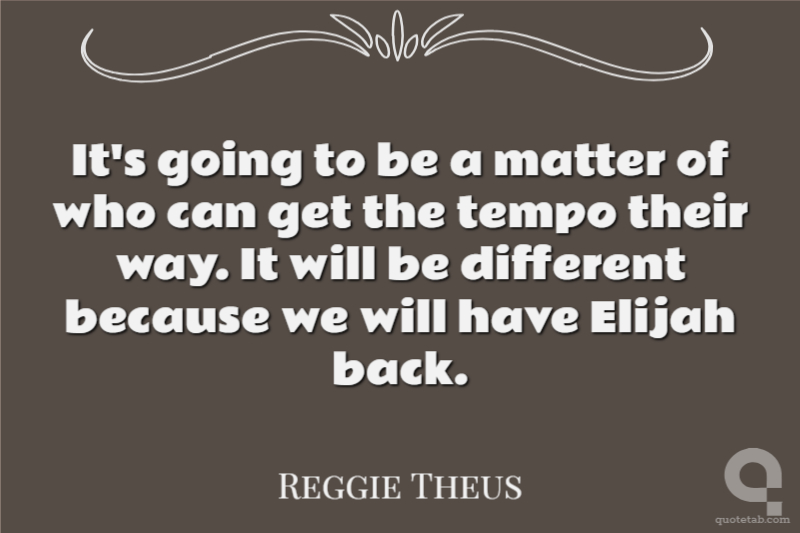 It's going to be a matter of who can get the tempo their way. It will be different because we will have Elijah back.