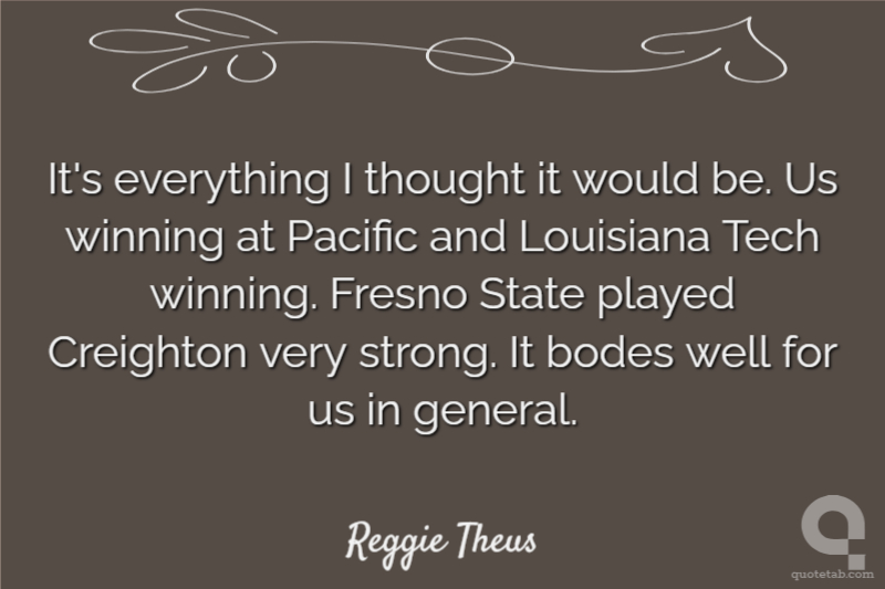 It's everything I thought it would be. Us winning at Pacific and Louisiana Tech winning. Fresno State played Creighton very strong. It bodes well for us in general.