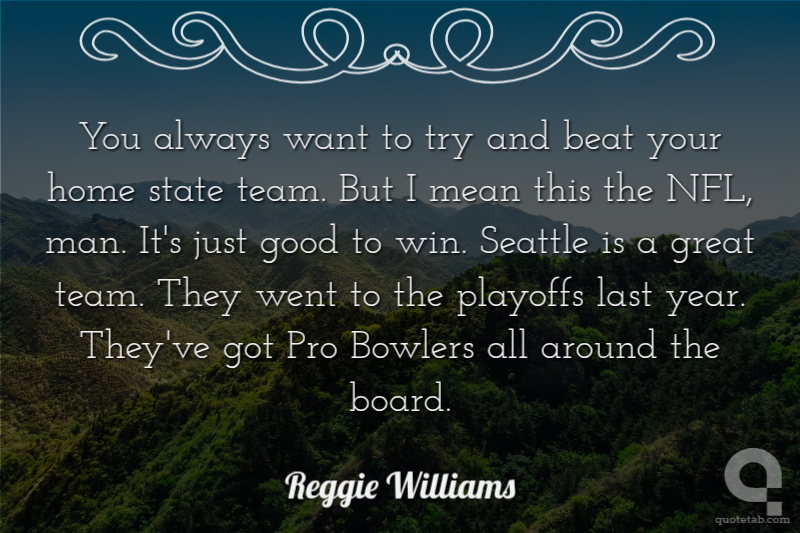 You always want to try and beat your home state team. But I mean this the NFL, man. It's just good to win. Seattle is a great team. They went to the playoffs last year. They've got Pro Bowlers all around the board.