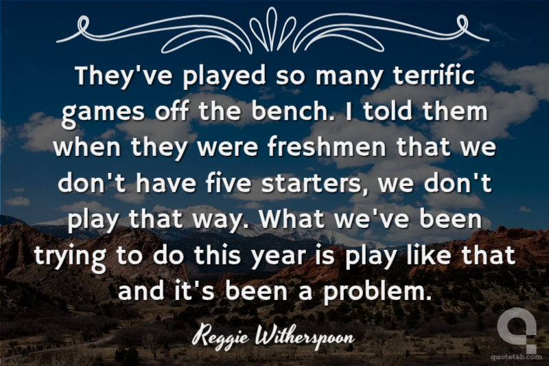 They've played so many terrific games off the bench. I told them when they were freshmen that we don't have five starters, we don't play that way. What we've been trying to do this year is play like that and it's been a problem.