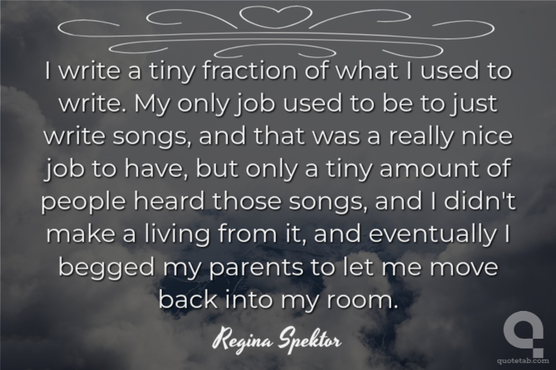 I write a tiny fraction of what I used to write. My only job used to be to just write songs, and that was a really nice job to have, but only a tiny amount of people heard those songs, and I didn't make a living from it, and eventually I begged my parents to let me move back into my room.