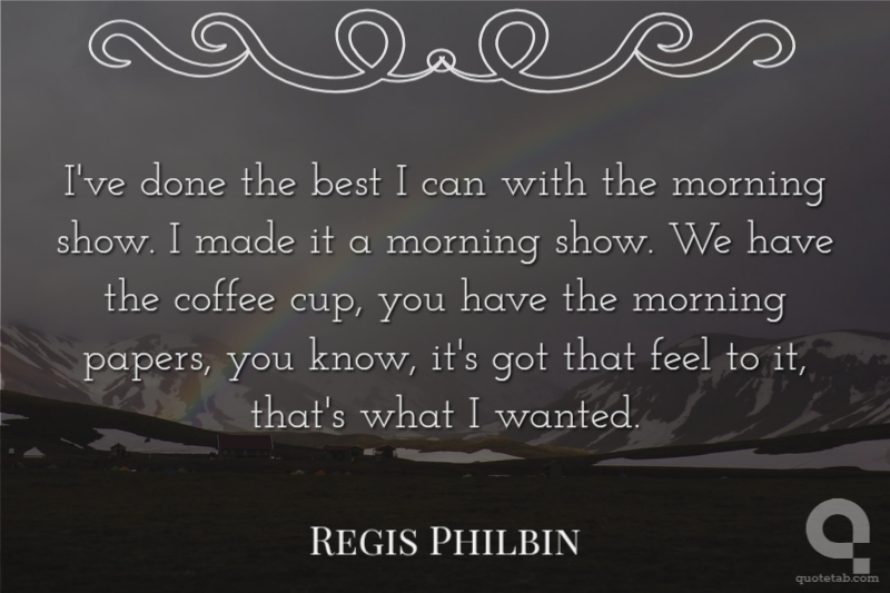 I've done the best I can with the morning show. I made it a morning show. We have the coffee cup, you have the morning papers, you know, it's got that feel to it, that's what I wanted.