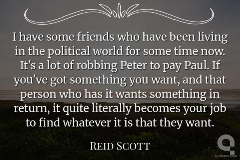 I have some friends who have been living in the political world for some time now. It's a lot of robbing Peter to pay Paul. If you've got something you want, and that person who has it wants something in return, it quite literally becomes your job to find whatever it is that they want.