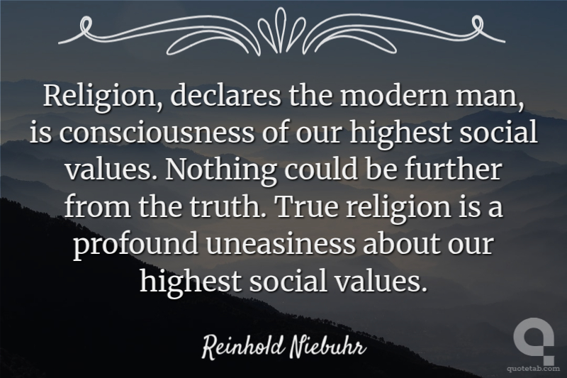 Religion, declares the modern man, is consciousness of our highest social values. Nothing could be further from the truth. True religion is a profound uneasiness about our highest social values.