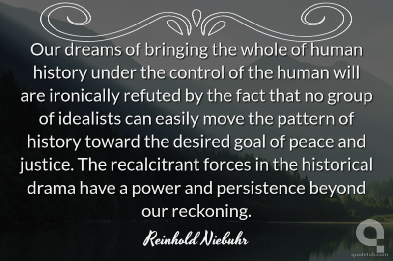 Our dreams of bringing the whole of human history under the control of the human will are ironically refuted by the fact that no group of idealists can easily move the pattern of history toward the desired goal of peace and justice. The recalcitrant forces in the historical drama have a power and persistence beyond our reckoning.