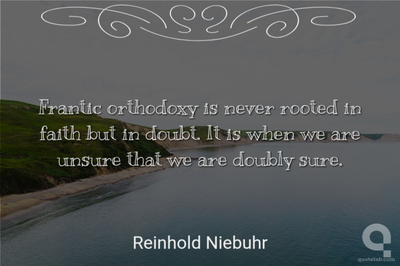 Frantic orthodoxy is never rooted in faith but in doubt. It is when we are unsure that we are doubly sure.