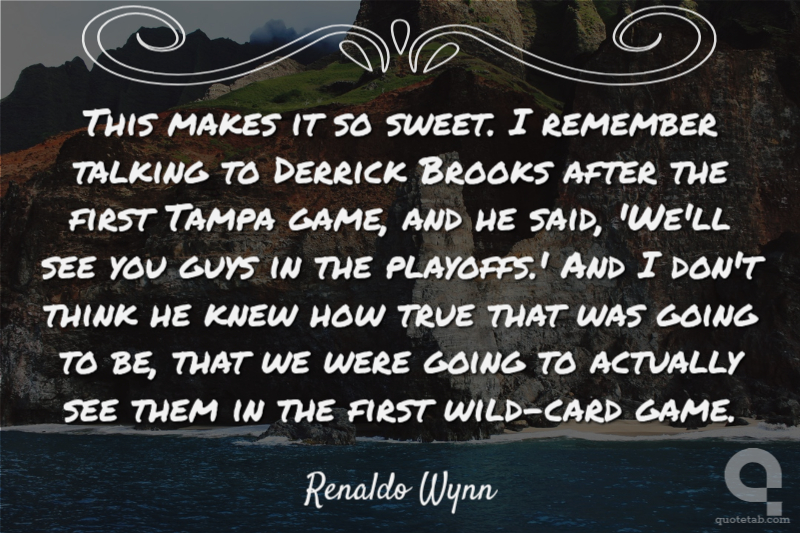 This makes it so sweet. I remember talking to Derrick Brooks after the first Tampa game, and he said, 'We'll see you guys in the playoffs.' And I don't think he knew how true that was going to be, that we were going to actually see them in the first wild-card game.