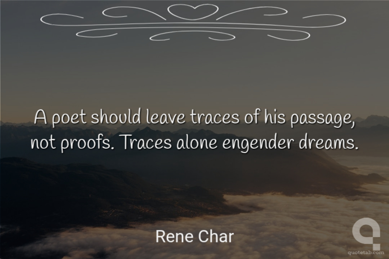A poet should leave traces of his passage, not proofs. Traces alone engender dreams.