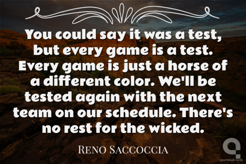You could say it was a test, but every game is a test. Every game is just a horse of a different color. We'll be tested again with the next team on our schedule. There's no rest for the wicked.