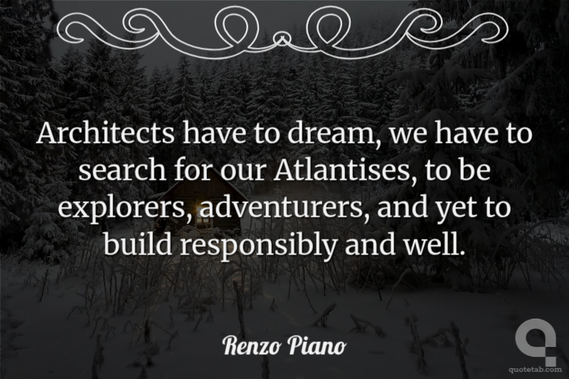 Architects have to dream, we have to search for our Atlantises, to be explorers, adventurers, and yet to build responsibly and well.