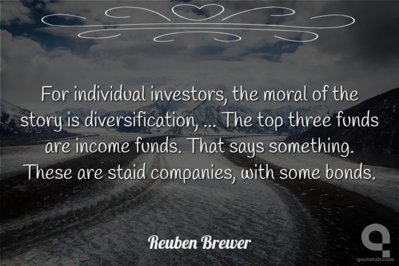 For individual investors, the moral of the story is diversification, ... The top three funds are income funds. That says something. These are staid companies, with some bonds.