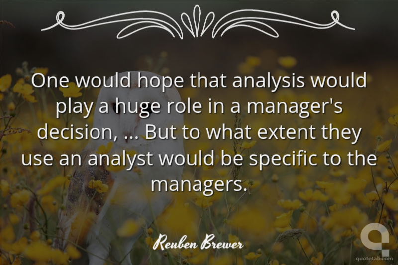 One would hope that analysis would play a huge role in a manager's decision, ... But to what extent they use an analyst would be specific to the managers.