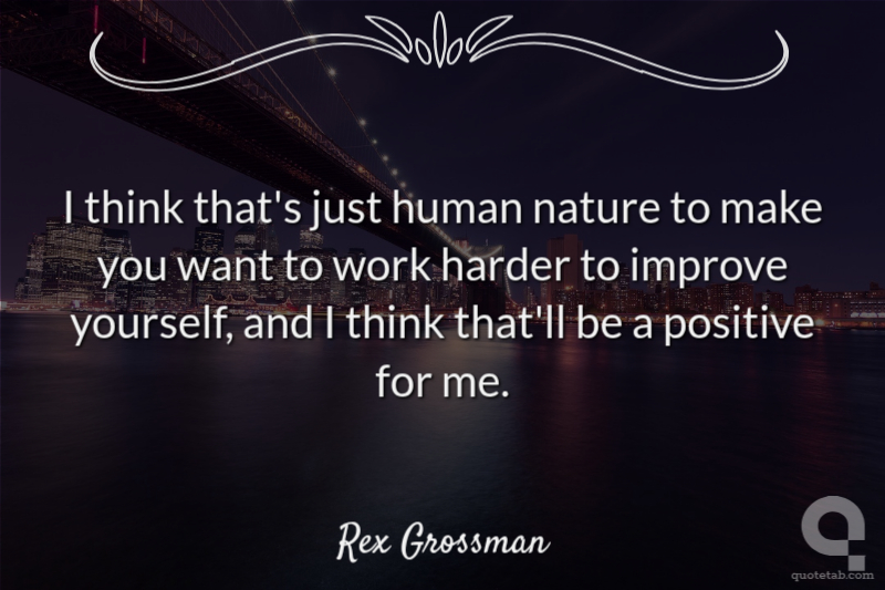 I think that's just human nature to make you want to work harder to improve yourself, and I think that'll be a positive for me.