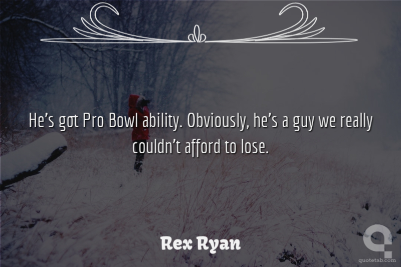 He's got Pro Bowl ability. Obviously, he's a guy we really couldn't afford to lose.