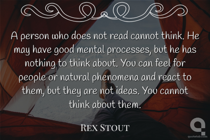 A person who does not read cannot think. He may have good mental processes, but he has nothing to think about. You can feel for people or natural phenomena and react to them, but they are not ideas. You cannot think about them.