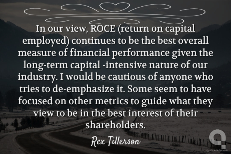 In our view, ROCE (return on capital employed) continues to be the best overall measure of financial performance given the long-term capital -intensive nature of our industry. I would be cautious of anyone who tries to de-emphasize it. Some seem to have focused on other metrics to guide what they view to be in the best interest of their shareholders.