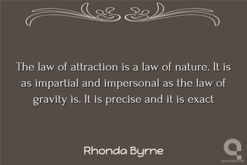 The law of attraction is a law of nature. It is as impartial and impersonal as the law of gravity is. It is precise and it is exact