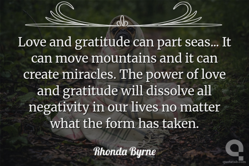 Love and gratitude can part seas... It can move mountains and it can create miracles. The power of love and gratitude will dissolve all negativity in our lives no matter what the form has taken.