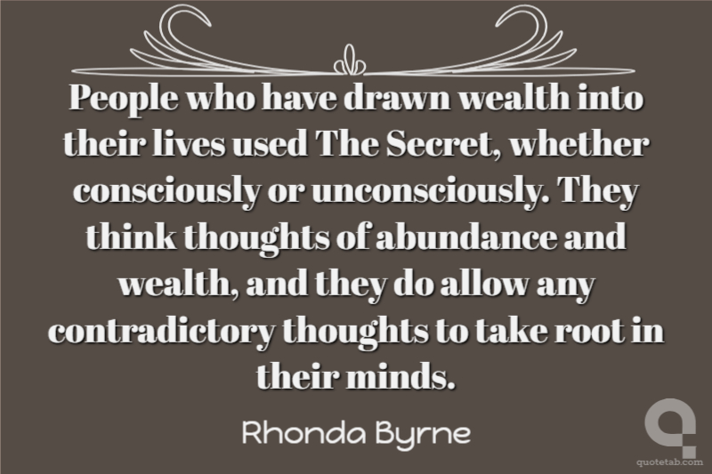 People who have drawn wealth into their lives used The Secret, whether consciously or unconsciously. They think thoughts of abundance and wealth, and they do allow any contradictory thoughts to take root in their minds.