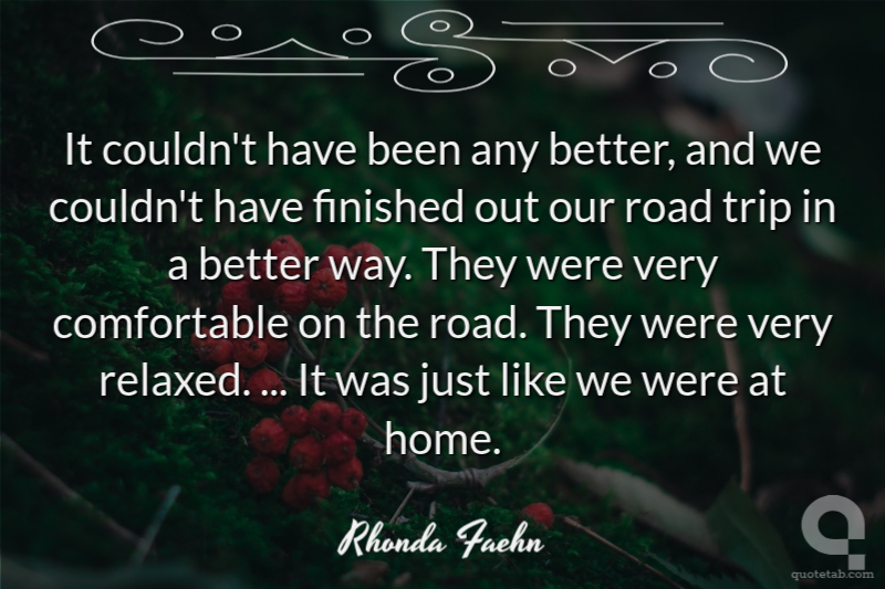 It couldn't have been any better, and we couldn't have finished out our road trip in a better way. They were very comfortable on the road. They were very relaxed. ... It was just like we were at home.