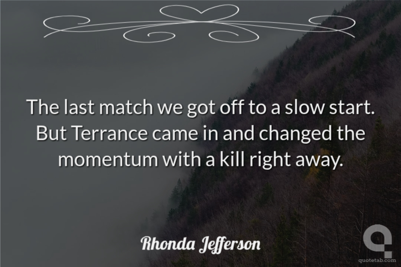 The last match we got off to a slow start. But Terrance came in and changed the momentum with a kill right away.